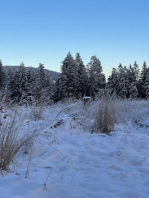 Bei schönem Wetter wollten wir nach dem obligatorischen Schwimmen unbedingt zum Rennsteig wandern. Nächstliegend zu Friedrichroda ist das Heuberghaus am Rennsteig. Die Straße ist gesperrt also bleibt nur der Wanderweg durch den Wald. Entnervt vom Aufstieg und dem vereisten Wanderweg haben wir die Tour vorm Erreichen des Ziels unterbrochen und sind wieder zurück zum Hotel.