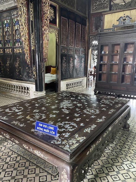 Später besuchten wir erneut ein traditionelles Mandarin-Haus, in dem man heute sogar als Tourist übernachten kann. Teile des Films „Der Liebhaber“ wurden hier gedreht. Der Film erzählt die Geschichte einer verbotenen Liebesbeziehung zwischen einer jungen Französin und einem wohlhabenden Chinesen im kolonialen Indochina der 1920er-Jahre – geprägt von Leidenschaft, gesellschaftlichen Zwängen und kulturellen Gegensätzen.