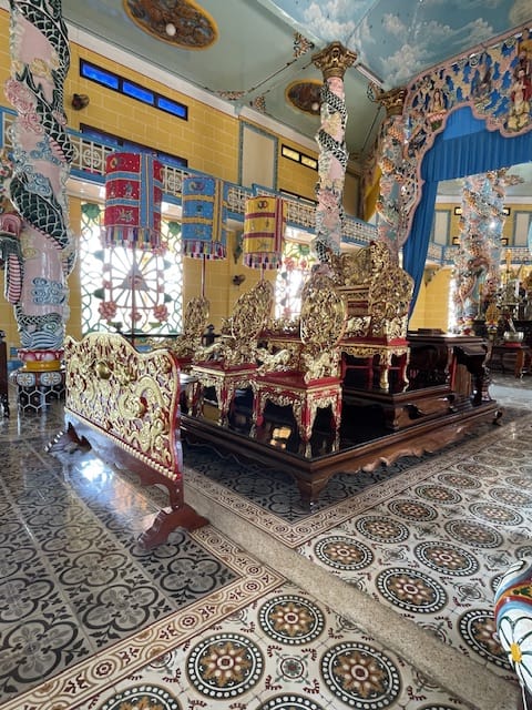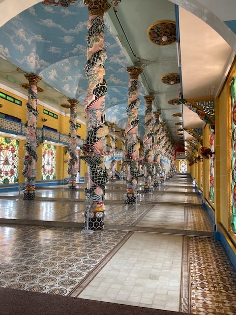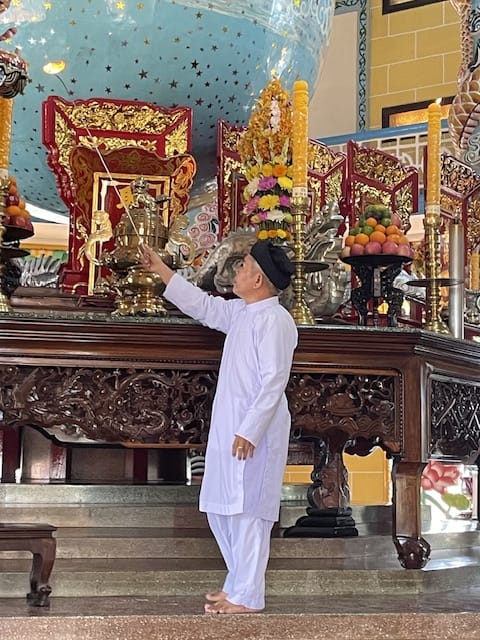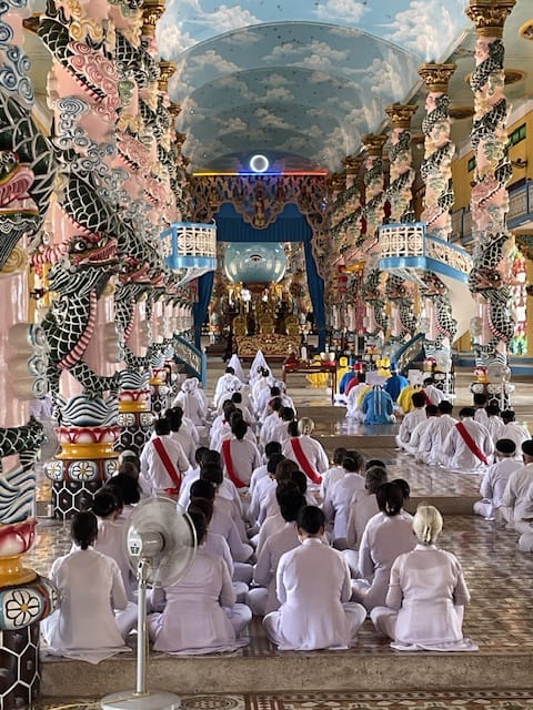 Man hört, dass es in Südvietnam viele solcher prächtigen Tempel gibt. Da fragt man sich unweigerlich, wer all das finanziert. Offiziell versteht sich die Religion als gemeinnützige Glaubensgemeinschaft, getragen durch Spenden ihrer Anhänger.