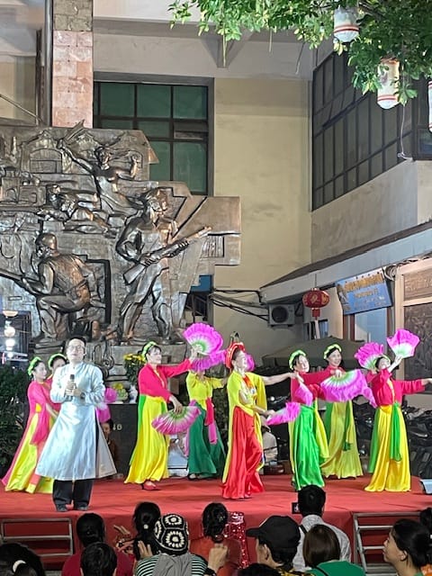 Gestern am Samstagabend im Altstadtzentrum von Hanoi: ein einziges pulsierendes Schauspiel. Schon beim Betreten der engen Straßen wurde klar: Hier schläft niemand. Der Nachtmarkt war bis in den letzten Winkel gefüllt, unzählige Händler boten ihre Waren an, dazwischen traten Kulturgruppen auf und auf kleinen Bühnen zeigten Künstler ihr Können. Musik, Stimmengewirr und das stetige Hupen der Mofas vermischten sich zu einer ganz eigenen, lebendigen Klangkulisse.