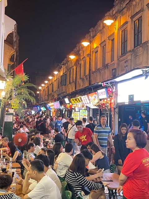 Gestärkt ging es danach direkt hinein ins pralle Leben. In den engen Gassen standen dicht an dicht kleine Tische und Plastikstühle, überall saßen Menschen, aßen, lachten und diskutierten. Und mittendrin: die allgegenwärtigen Mofas, die sich hupend ihren Weg durch die Menschenmengen bahnten – ein scheinbar chaotisches, aber irgendwie perfekt funktionierendes System.