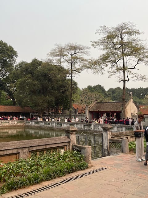 Der Tag begann früh um 9:00 Uhr mit unserer Fahrt zum beeindruckenden Literaturtempel. Diese historische Anlage, die im Jahr 1070 gegründet wurde, gilt als Vietnams erste Universität und ist dem Philosophen Konfuzius gewidmet. Über Jahrhunderte hinweg wurden hier Gelehrte ausgebildet, und bis heute strahlt der Tempel eine besondere Ruhe und Würde aus.
