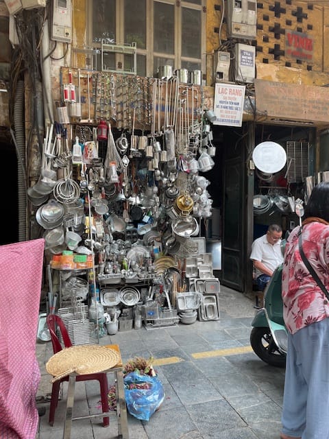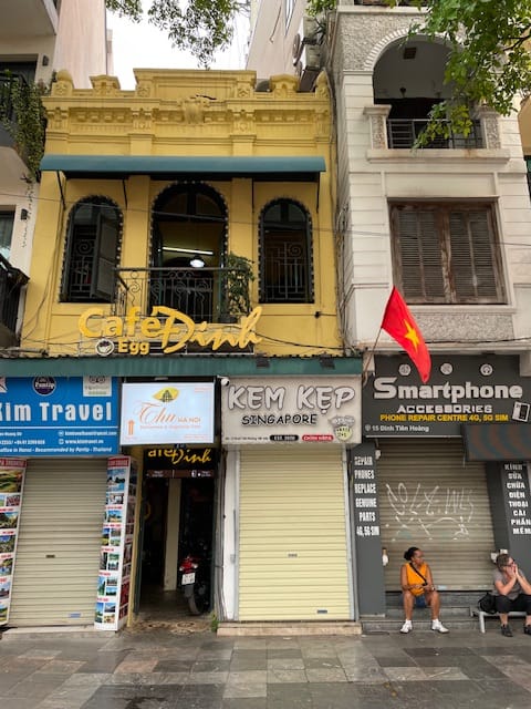 Unser erster Stadtbummel führte uns durch die lebhafte Altstadt von Hanoi. Schon am frühen Morgen war es sehr warm, und die Straßen pulsierten vor Leben. Eine besondere Entdeckung war der berühmte „Ei-Kaffee“ – eine vietnamesische Spezialität, bei der Eigelb mit Zucker schaumig geschlagen und wie ein cremiger Cappuccino auf starken, kleinen Kaffee gegeben wird. Das Café selbst war fast ein Geheimtipp: Um dorthin zu gelangen, mussten wir uns durch einen schmalen Gang an dicht geparkten Motorrädern vorbeischlängeln und anschließend zwei enge Treppen hinaufsteigen.