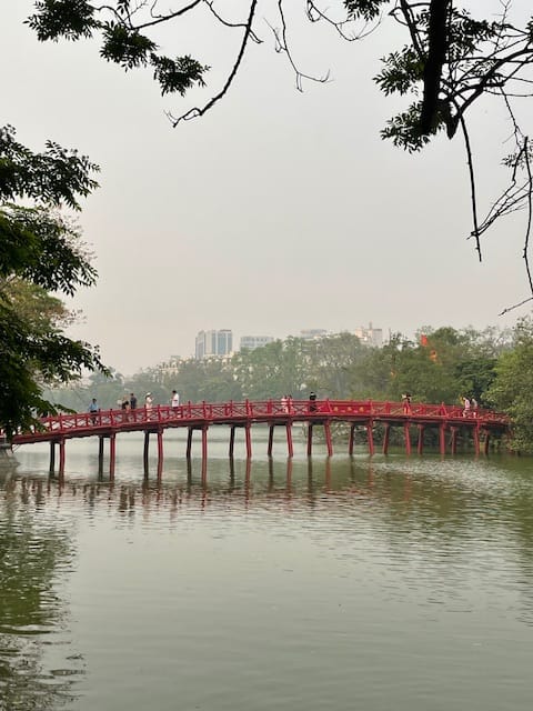 Weiter ging es zum Hoan Kiem Lake, einem zentralen See mitten in der Stadt, der nicht nur ein beliebter Treffpunkt für Einheimische ist, sondern auch eine große kulturelle Bedeutung hat. Der Name bedeutet „See des zurückgegebenen Schwertes“ und geht auf eine Legende zurück, nach der ein Kaiser ein magisches Schwert an eine goldene Schildkröte im See zurückgab. Auf einer kleinen Insel im See besuchten wir den Ngoc Son Temple, einen malerischen Tempel, der über eine rote Holzbrücke erreichbar ist und dem Gelehrten Van Xuong sowie dem General Tran Hung Dao gewidmet ist.