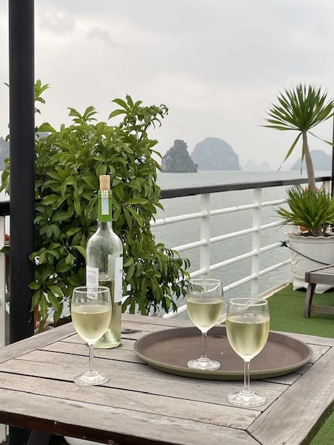 Anschließend wurden wir wieder vom Schiff abgeholt, und es ging zurück durch die Bucht. Während der etwa zweistündigen Rückfahrt wurden wir an Bord mit einem reichlichen Mittagessen verwöhnt – eine willkommene Stärkung nach dem anstrengenden Höhlenbesuch.