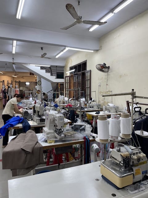 Natürlich durfte auch ein Stopp in einer Seidenmanufaktur mit Verkaufsräumen nicht fehlen. Dort wurde maßgeschneiderte Seidenkleidung angeboten. Hätten wir gewollt, hätte man uns sofort Maß genommen und die fertigen Stücke noch am Abend ins Hotel geliefert. In der Schneiderwerkstatt standen überall Juki Nähmaschinen dicht an dicht.
